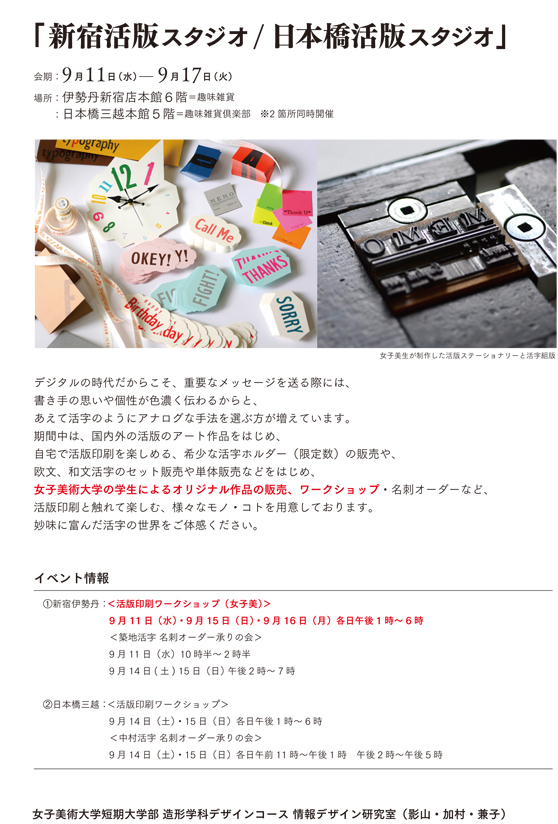 「新宿活版スタジオ/日本橋活版スタジオ」活版ワークショップ&作品販売