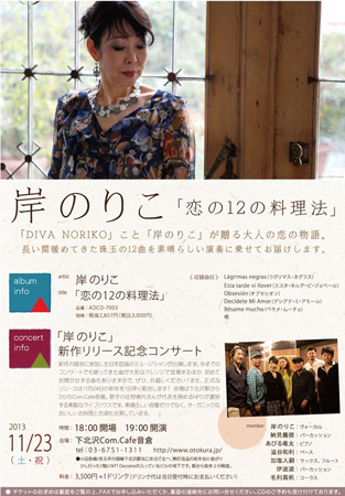 岸のりこ:ヴォーカル 納見義徳:パーカッション あびる竜太:ピアノ 澁谷和利:ベース 加塩人嗣:サックス、フルート 伊波淑:パーカッション 毛利真帆:コーラス |