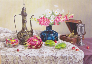 入選作品「ドラゴンフルーツのある静物」(P25号)