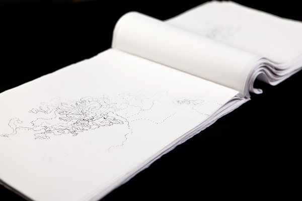 考えて行くうち、点で線を描こうと思いついて…自分が歩いた道を描いてみたりもしました。