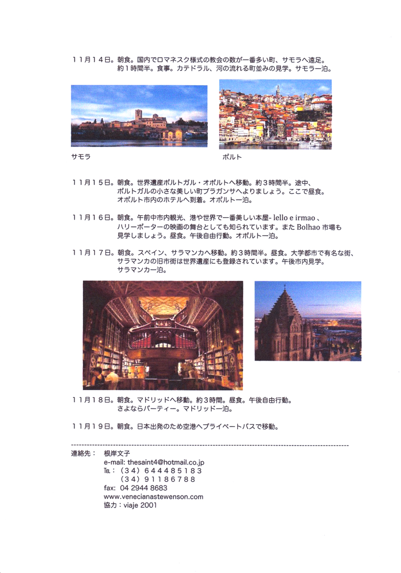 根岸文子さんがスペイン、ポルトガルの文化財の豊富な地方都市を廻るツアーを企画されました。