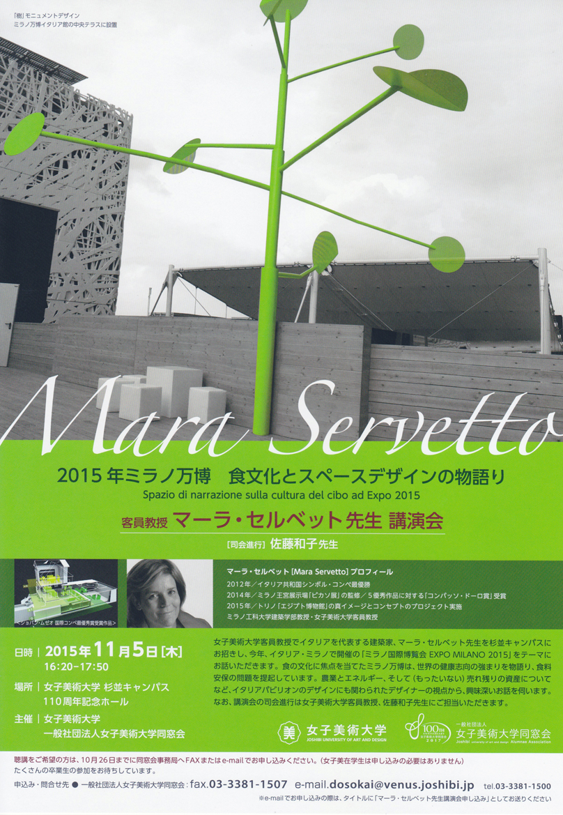 食文化とスペースデザインの物語り 客員教授 マーラ・セルベット先生 講演会 [司会進行]佐藤和子先生 日時:2015年11月5日(木) 16:20-17:50