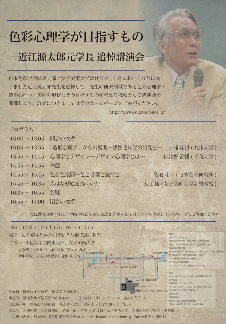 色彩心理学が目指すもの ー近江源太郎元学長 追悼講演会ー2015.11.12