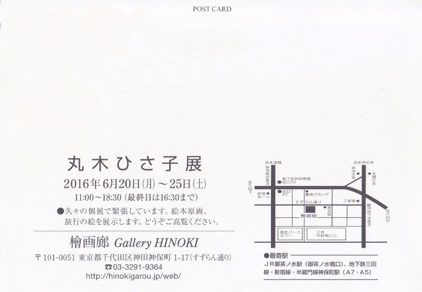 檜画廊で、丸木ひさ子さん(絵本作家/丸木俊さんの姪)の個展が開催されます。