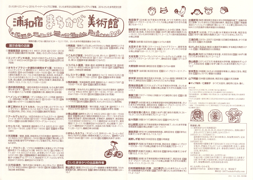 浦和宿界隈の古い建物やお店に作品を展示して、街歩きを楽しんでもらおうという企画です。 さいたまトリエンナーレのパートナーシップロゴ事業です。