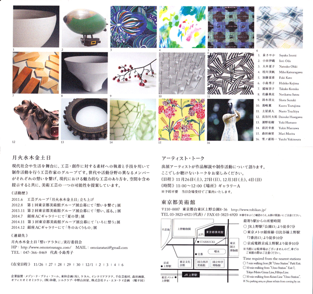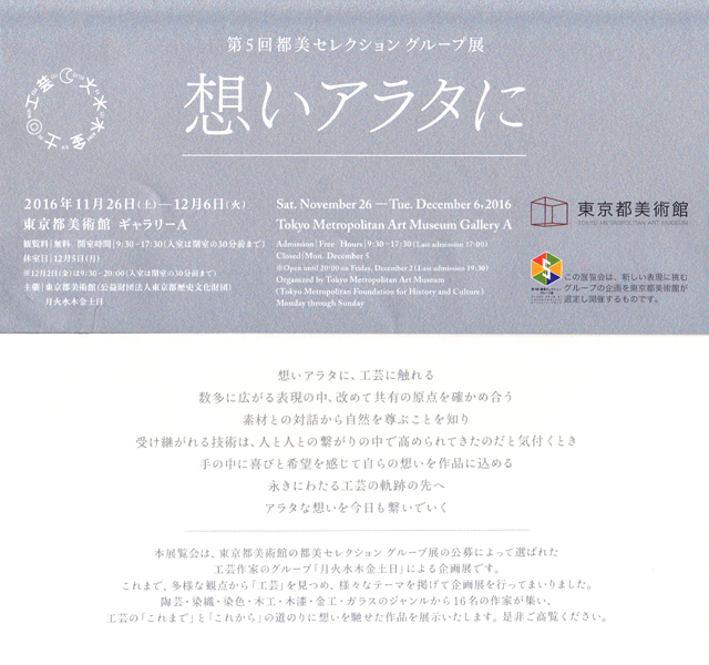 東京都美術館の都美セレクション グループ展の公募によって選ばれた工芸作家のグループ「月火水木金土日」による企画展です。
