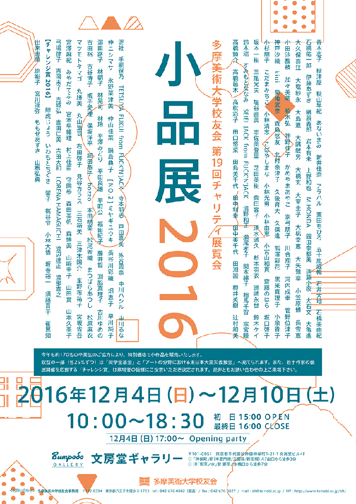 多摩美術大学校友会では今年も約170名の卒業生のご協力により、特別価格で小作品を販売いたします。