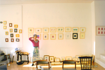 ○展覧会へ向けご準備中の大原さんとEiko OHARA Galleryの風景