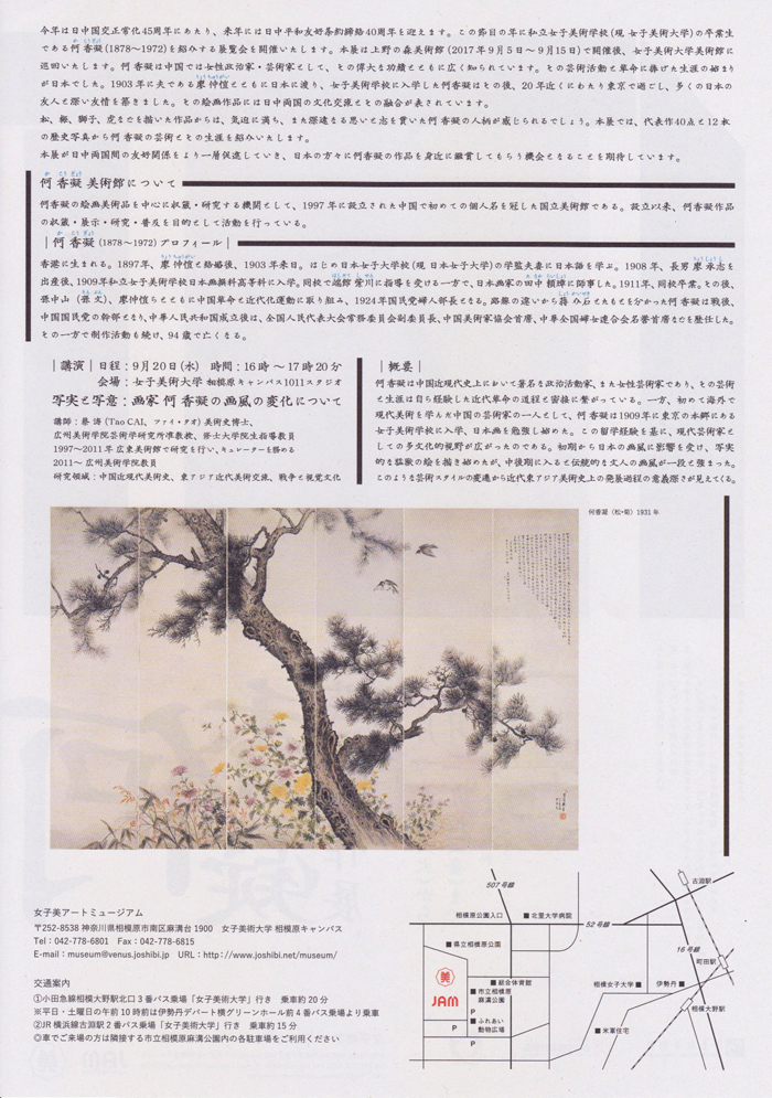 ■講演 「写実と写意:画家 何香凝の画風の変化について」 日程:9月20日(水) 時間:16:00-17:20 会場:女子美術大学 相模原キャンパス1011スタジオ 講師:蔡涛
