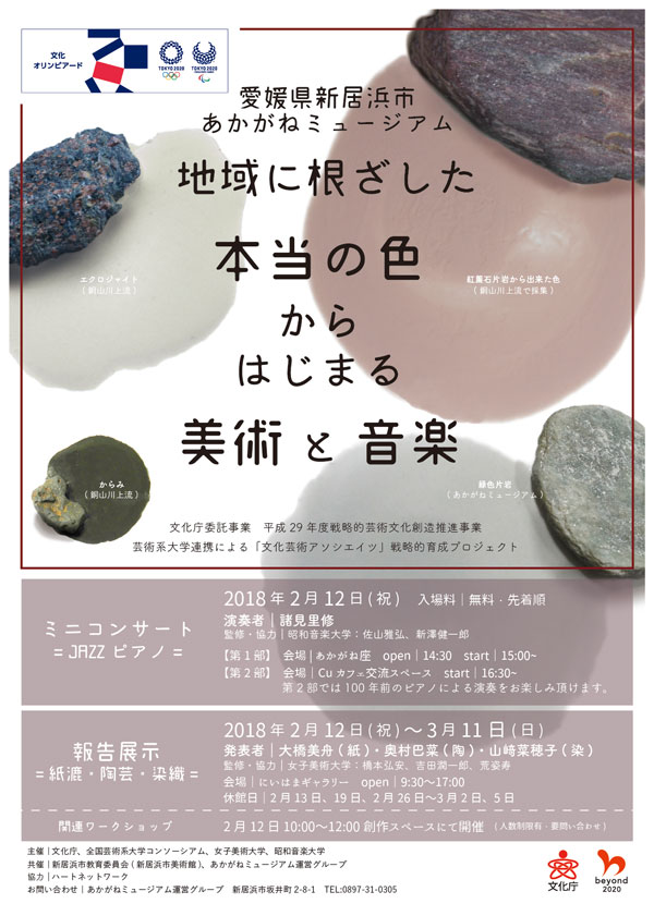 (主催:女子美術大学) 日時:2018年2月12日(月・祝) 10:00-12:00 会場:創作スペース 対象:小学生〜高校生 定員:10名 お問合せ先:あかがねミュージアム TEL:0897-31-0305
