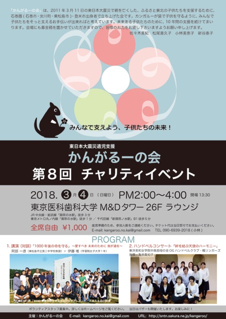 詳細はホームページをご覧ください かんがるーの会:http://sntn.sakura.ne.jp/kangaroo/Charity.html