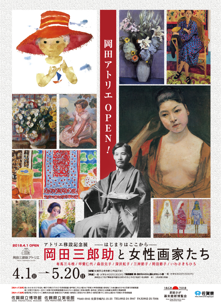 女子美術大学でご指導された岡田三郎助先生の東京・渋谷に所在したアトリエを佐賀に移築し、平成30年4月1日より公開が開始されます。 このアトリエは岡田先生の数々の名作が誕生した場であり、またその一室は、先生が主宰された画塾「女子洋画研究所」の教室として使用され、ここから多くの女性画家たちが巣立っていきました。
