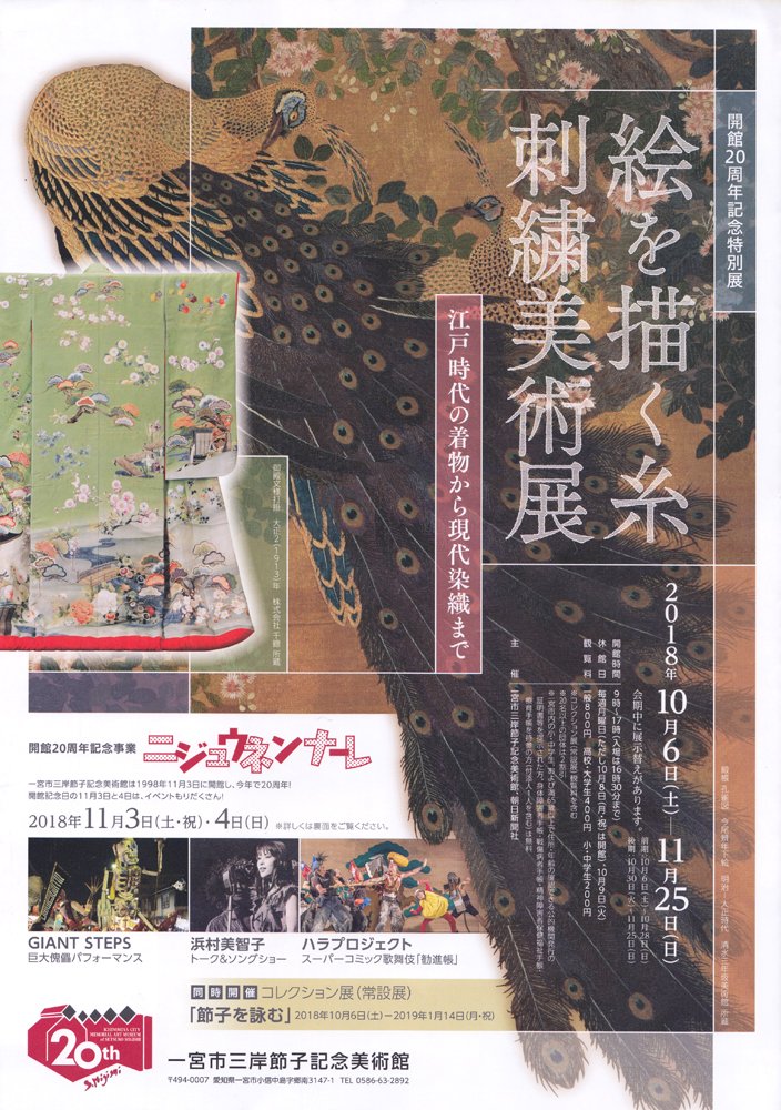 ・講演会「明治刺繍絵画の世界」 日時:10月20日(土) 14:00~(開場13:30) 講師村:村田理如氏(清水三年坂美術館 館長) 会場:一宮市三岸節子記念美術館 1階 講義室 定員:100名(先着) 参加費:無料 申込み:不要(当日直接会場)