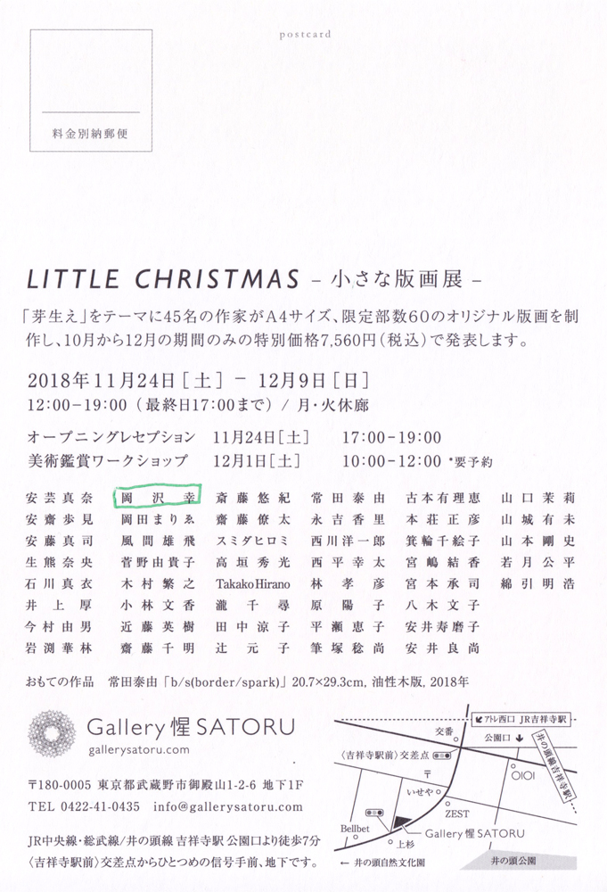 岡沢幸 | LITTLE CHRISTMAS ー小さな版画展ー/Little Christmas 小さな版画展2018 〜芽生え〜/Spectrum 2018 | 展覧会情報2018.12.03
