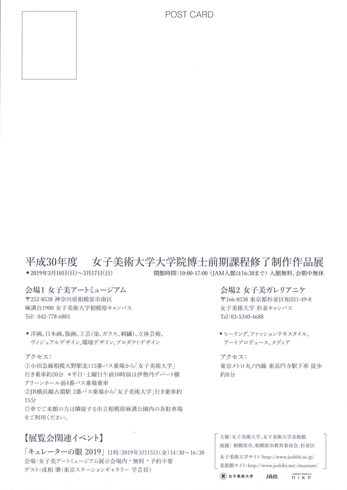 平成30年度 女子美術大学大学院博士前期課程修了制作作品展2019.01.23