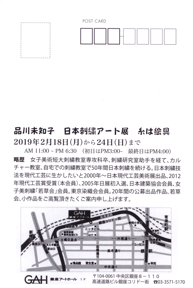 品川 未知子 日本刺繡アート展 糸は絵具