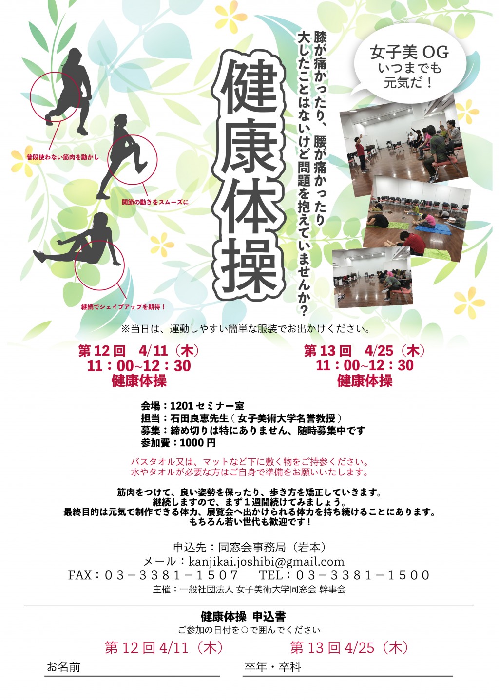■お申込み・お問合せ先 一般社団法人女子美術大学同窓会事務局(担当:岩本) e-mail: kanjikai.joshibi@gmail.com FAX: 03-3381-1507 TEL: 03-3381-1500