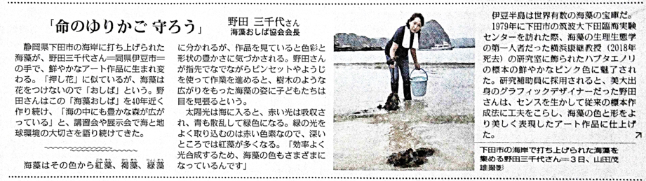 海藻おしば協会会長 野田三千代さん(1968年造形科図案教室)の活動が
