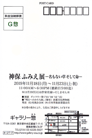 ■会場 ギャラリー惣 〒104-0061 東京都中央区銀座7-11-6徳島新聞ビル3F TEL&FAX 03-6228-5507