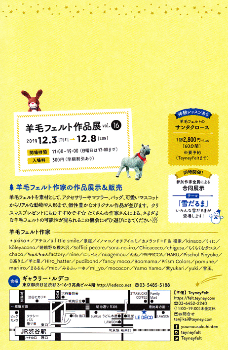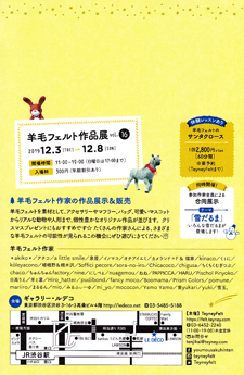 【主催】TeyneyFelt 03-6452-2240(11:00〜19:00)木金定休 お問い合わせ tenjikai@teyney.com facebook:youmousakuhinten instagram:teyneyfelt twitter:Teynetfelt