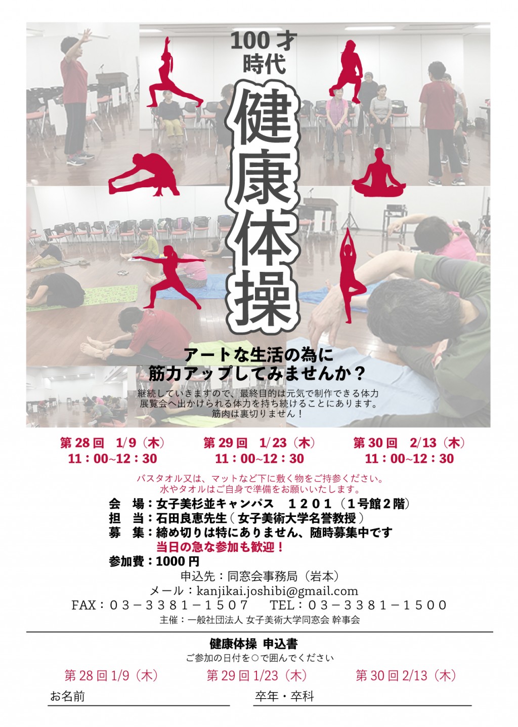 ■お申込み・お問合せ先 一般社団法人女子美術大学同窓会事務局(担当:岩本) e-mail: kanjikai.joshibi@gmail.com FAX: 03-3381-1507 TEL: 03-3381-1500