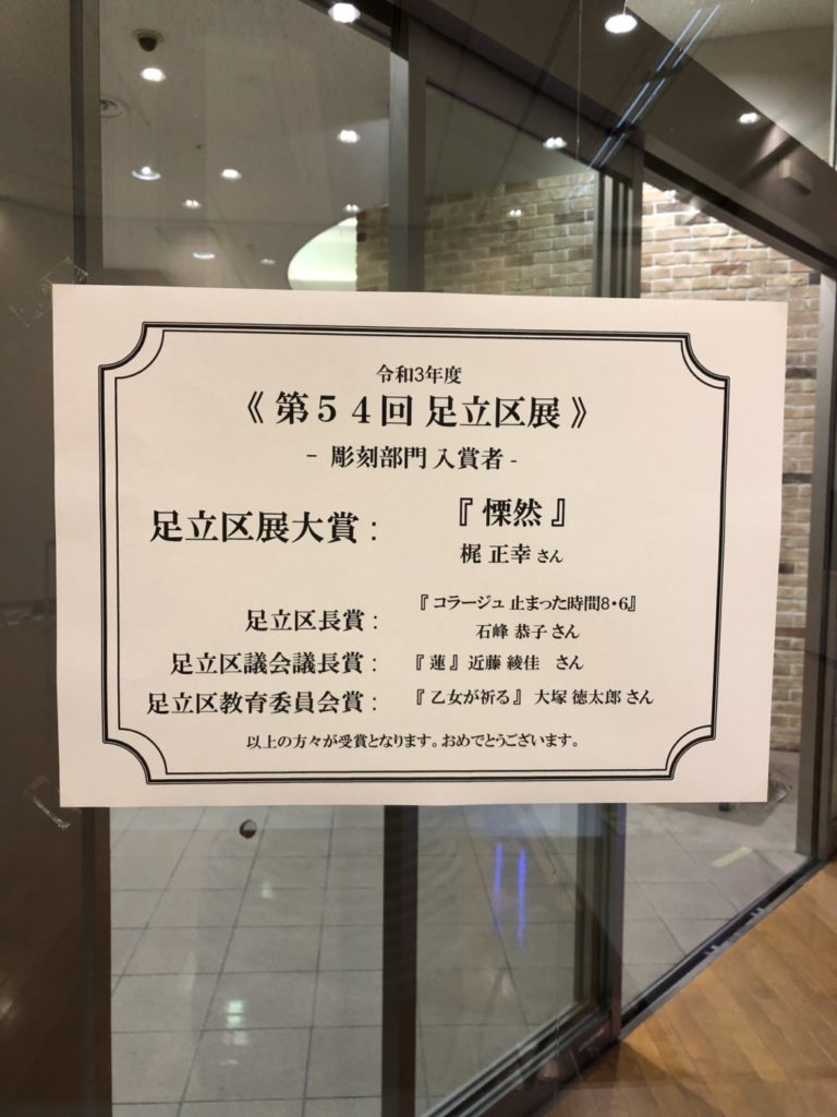 近藤綾佳さん(2015年芸術学部美術学科立体アート)が第54回足立区展-彫刻部門-において 足立区議会議長賞 を受賞されました。