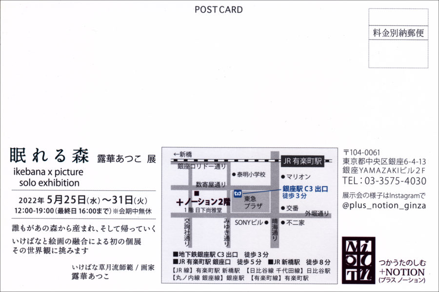 ■会場 +NOTION 〒104-0061 東京都中央区銀座6-4-13 銀座YAMAZAKIビル2F TEL:03-3575-4030
