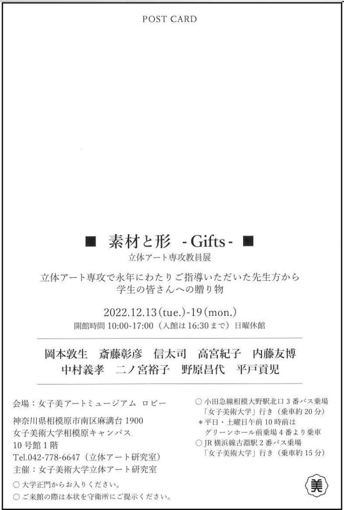 ■ 素材と形 -Gifts- ■ 立体アート専攻教職員展