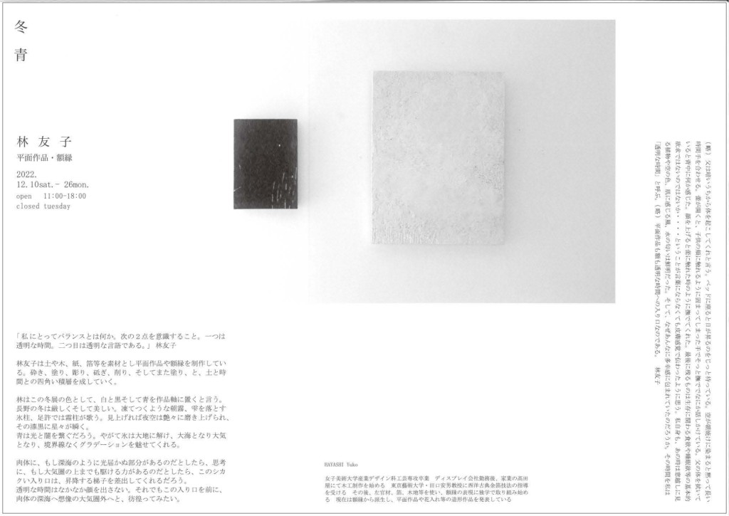 ■会期:2022年12月10日(日)〜12月26日(月) 火曜休廊