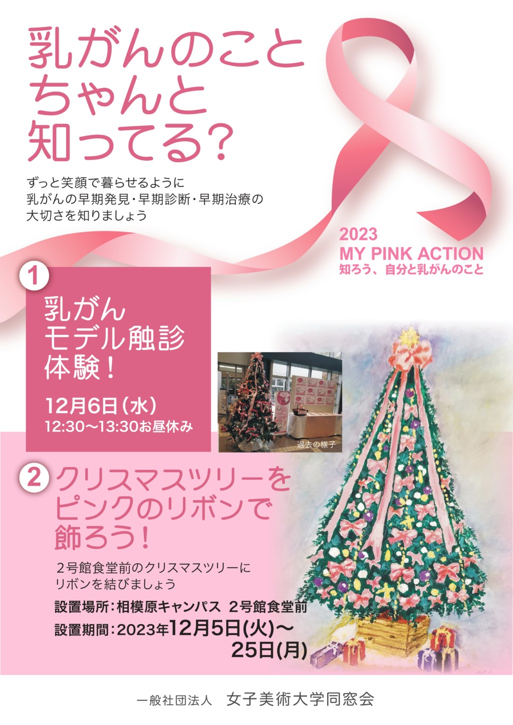 ピンクリボン運動をきっかけに、ご自身の身体への関心を持ってもらえたら嬉しいです。今年は相模原キャンパスにツリーを設置します。ツリーにピンクリボンを飾りましょう!