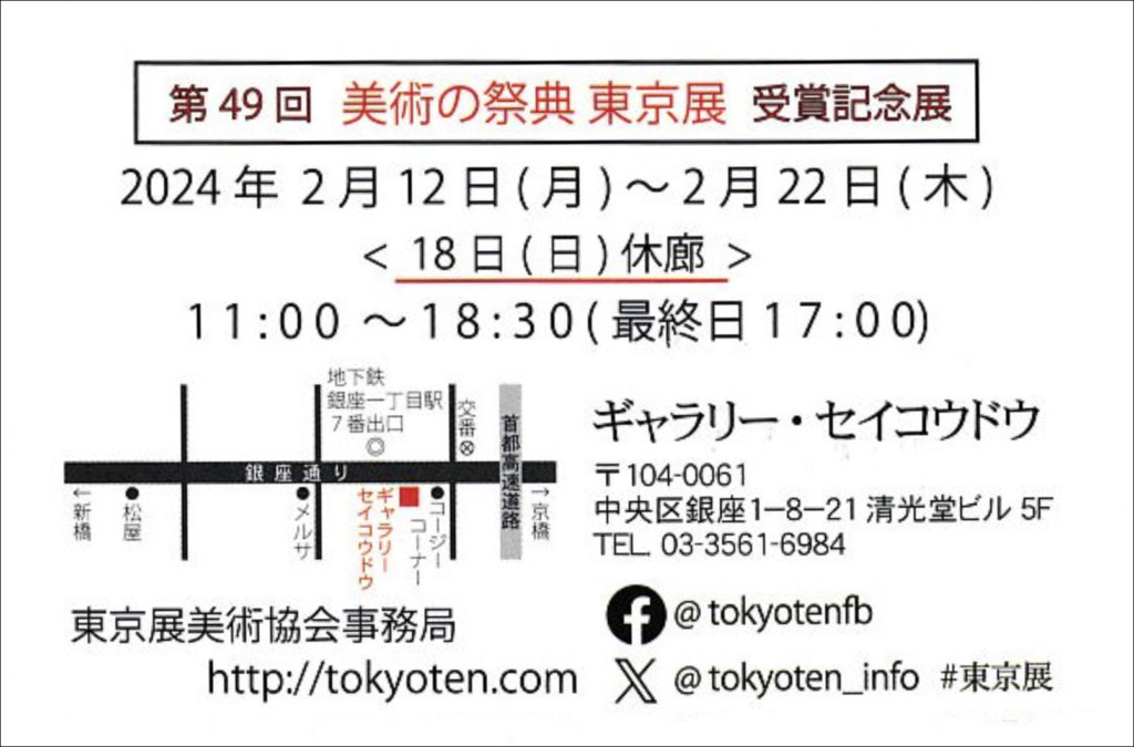 ■会期 2024年2月12日(月)〜2月22日(木) ※18日(日)休廊