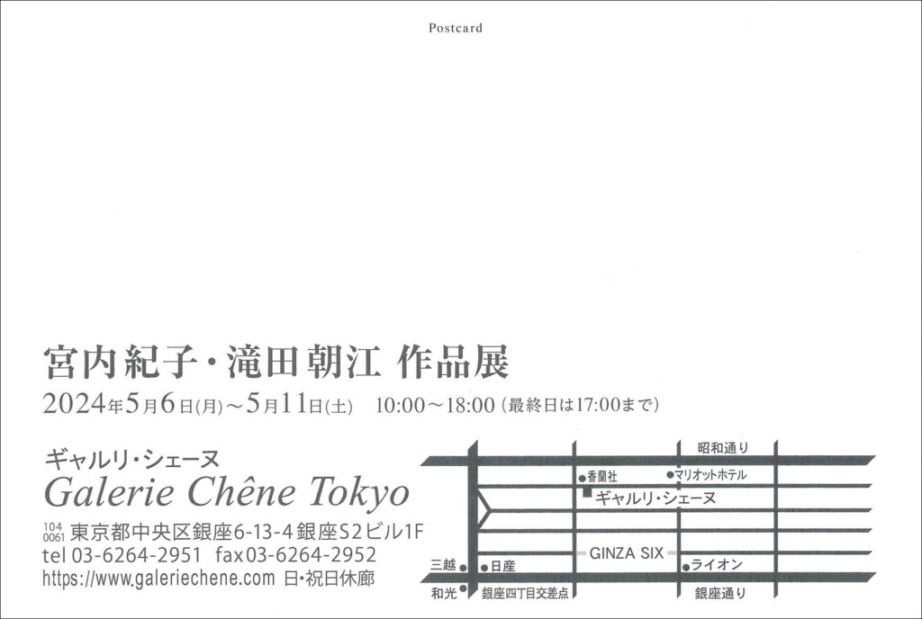 ■会場:ギャルリ・シェーヌ〒104-0061 東京都中央区銀座6-13-4銀座S2ビル1FTEL:03-6264-2951