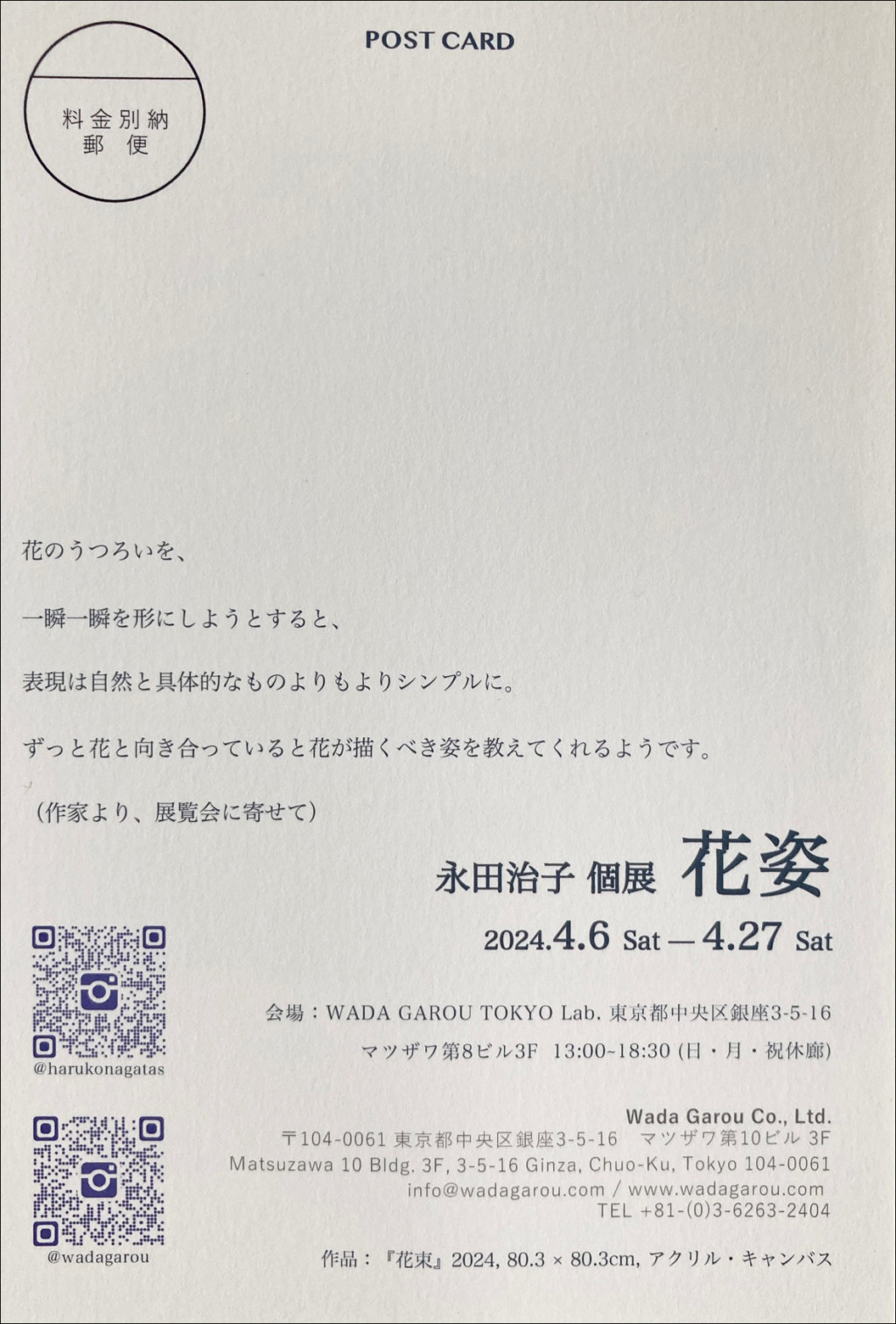 ■会期:2024年4月6日(土)〜27日(土) (日・月・祝休廊)