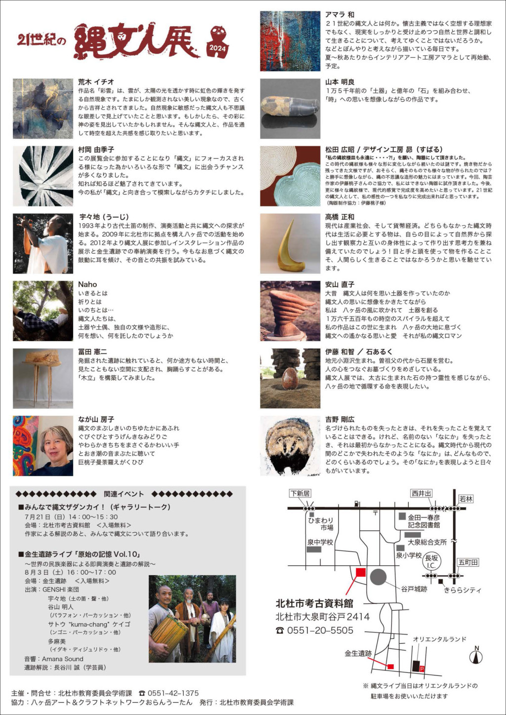 縄文人の感性にどこまでれるか、縄文人の感性からインスピレーションを作品に投影している現代作家による作品展。