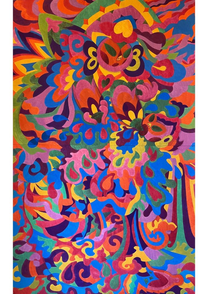 なが山房子の縄文曼荼羅「巨桃子マンダラ」大作1点(2024年制作)を展示します。