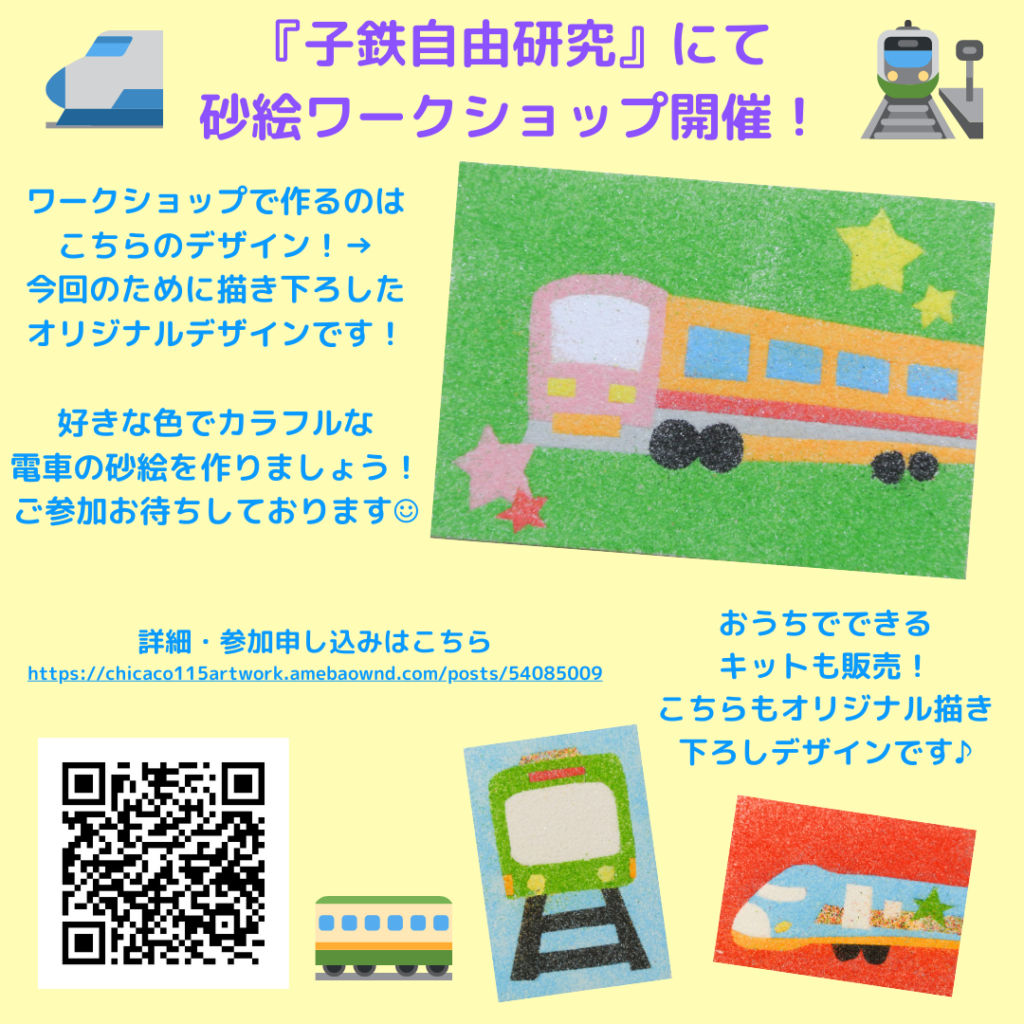 この度、イベント「子鉄自由研究」にてお子様向け砂絵ワークショップをメインに出店します!(大人も大歓迎!)