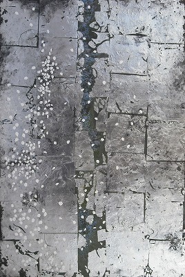 "VOYAGE DE FLEURS – FUTUR" 「はな散りゆく果て」 はなびらひとつひとつに人生を重ね、日本古来の岩絵の具銀箔で表現。