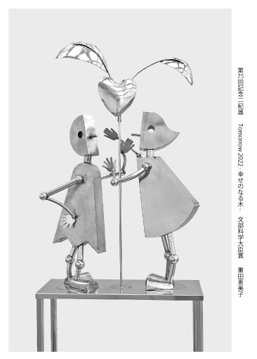 重田恵美子さん(卒業時氏名:高橋恵美子) (1977年 芸術学部芸術学科造形学専攻)が制作をした「Tomorrow-幸せのなる木-」が2022年の一般社団法人 第75回 ニ紀展彫刻にて文部科学大臣賞受賞を受賞いたしました。