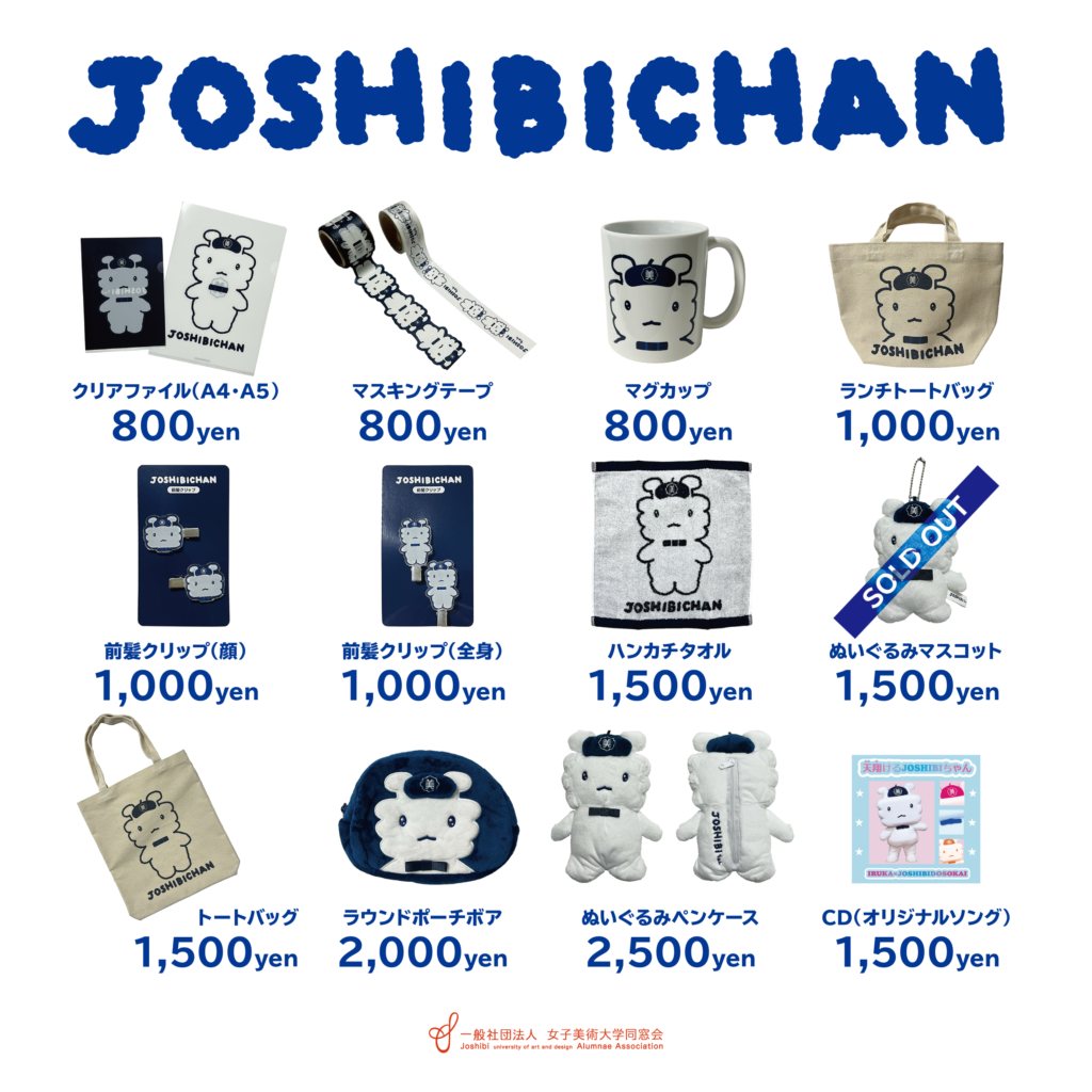 また、同窓会ブースでは「女子美ちゃんグッズ10種」の販売も行います。