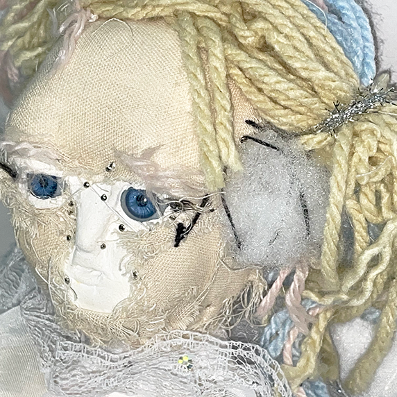布(コットン) グラスアイ 釘 石粉粘土 毛糸 リボン(サテン) 作者の髪の毛)等