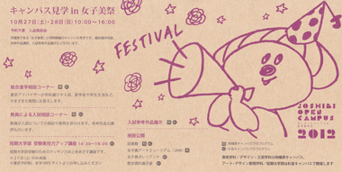 詳細や最新情報は、相模原キャンパス女子美祭WEBサイト をご覧ください。