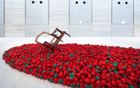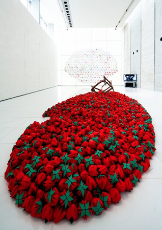 野口香子〈あるひとつの祈りー苺たちと共にー〉岩手県立美術館での、展示風景。