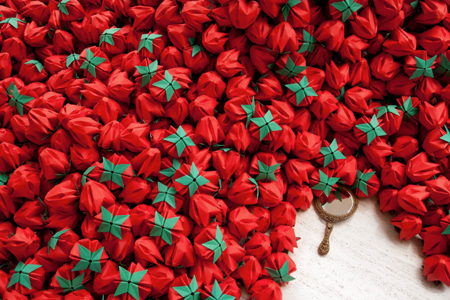 紙、呼吸、手鏡、紅 300x300x50cm 2012