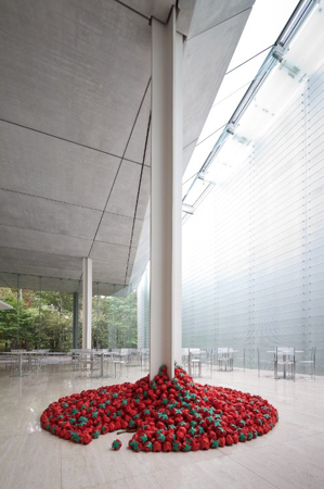 今回は、昨年暮れまで展示させていただいていた、箱根のポーラ美術館でのインスタレーションについてです。こちらは展覧会というより、ポーラ美術館の理事長さんが、苺のインスタレーション作品を個人的に買ってくださって、その作品のお披露目といったかんじでの展示だったのですが、ポーラ美術館のロビーに、10月上旬から12月25日まで展示していただきました。ポーラ美術館は、ピカソやセザンヌなど印象派のコレクションが中心で、(なんと年間21万人の人が来るそうです。オドロキ。)、現代美術の展示は、はじめてだったそうです。
