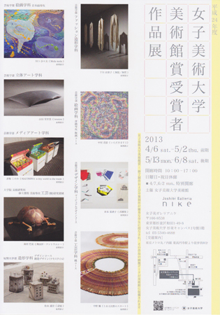 女子美術大学美術館賞 受賞者作品展 平成24年度女子美術大学美術館賞の受賞者である学生9名の作品を前期・後期に分けて